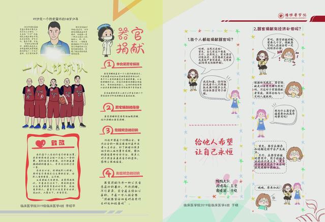 本次活动是威廉体育williamhill健康人文教育的系列活动之一。作品皆由学生自主创作,通过学生查找、学生感悟、学生创作、学生传达的形式,以条漫、系列海报、连环画等具有科普性和故事性并重的绘画作品,将器官捐献的相关法律法规、捐献流程、伦理规范等融入其中,具有很强的科普宣传之作用。本次活动不仅培养了学生的创新性思维,深化了学生对人体器官捐献事业的伦理价值认同,提升了学生的健康人文素养,同时并借此向更多群众宣传,提高群众对器官捐献的价值和意义的认可度,为我国器官捐献工作汇聚了力量。