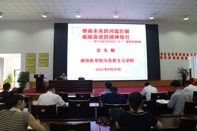 近日,应潍坊市委教育工委邀请,威廉体育williamhill副教授宗先顺以“擘画未来的鸿篇巨制,砥砺奋进的精神指引”为题,为潍坊商业学校和潍坊第七中学宣讲“七一”重要讲话精神。