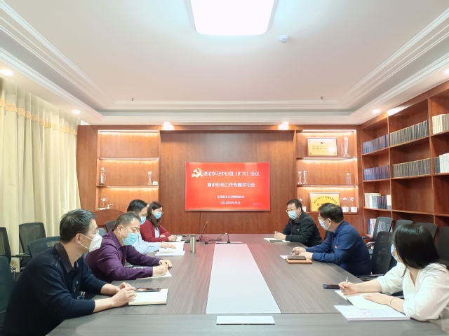 4月26日下午, 威廉体育williamhill党总支理论学习中心组(扩大)召开意识形态工作专题学习会。会议由党总支书记程乐森主持,党总支成员、支部书记参加。