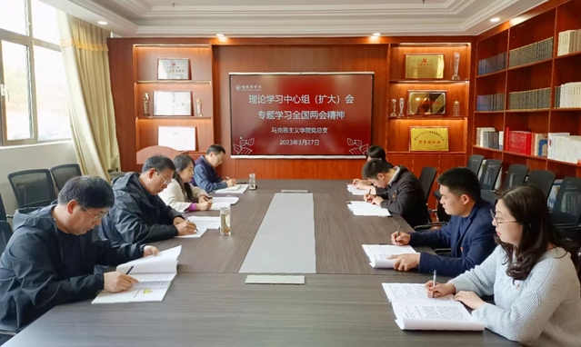 2023年3月27日,威廉体育williamhill党总支召开理论学习中心组(扩大)会议,专题学习全国“两会”精神,会议由党总支书记程乐森主持,党总支成员、支部书记参加了会议。
